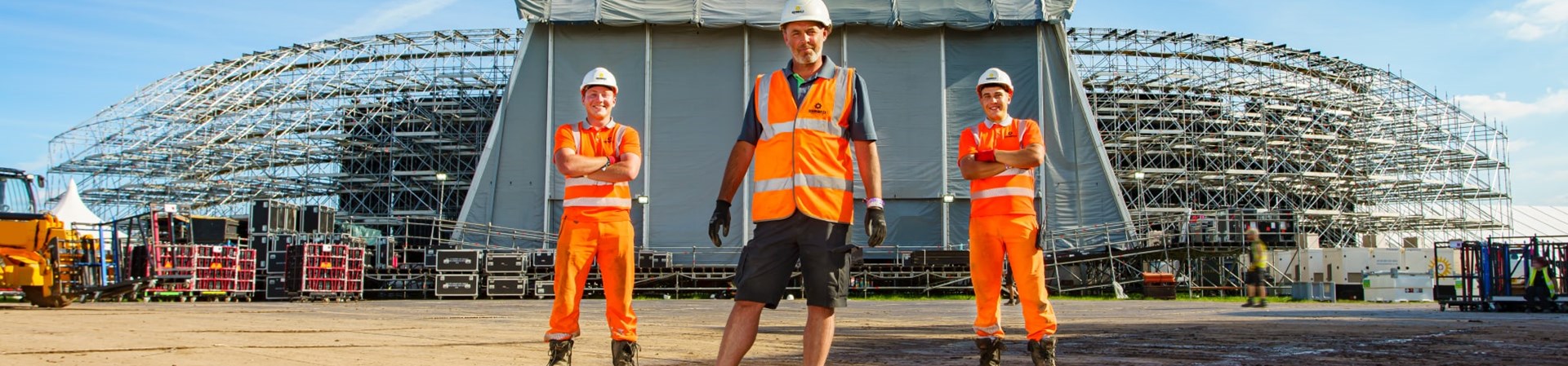 Next, you need plant, and lots of it. Literally, tonnes of equipment must be moved around the site, while a range of access machines are required to build and rig up structures like the infamous Steel Yard, the mind-blowing Arc Stage, and the Warehouse, big enough to house several aircraft!